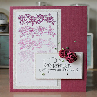 One of the new stamps from Reprint holds a whole row of roses. Here I stamped the same stamp several times using different shades of purple for an "ombre" effect. I really like how it turned out!